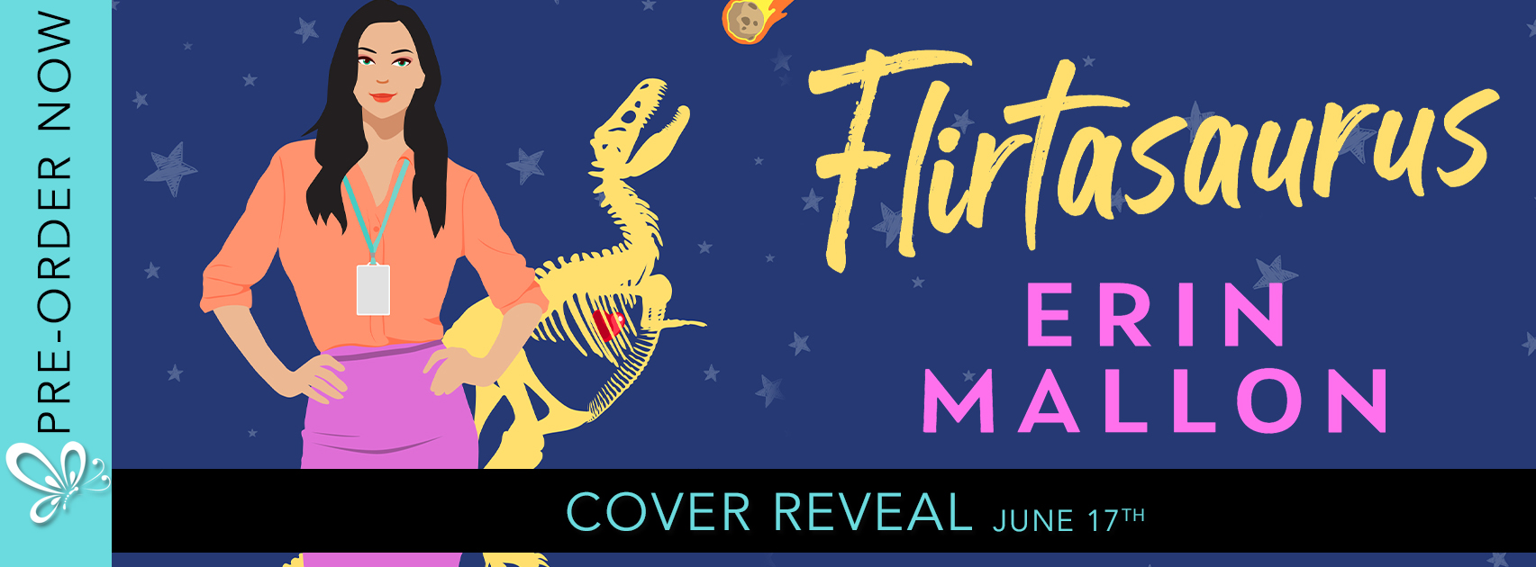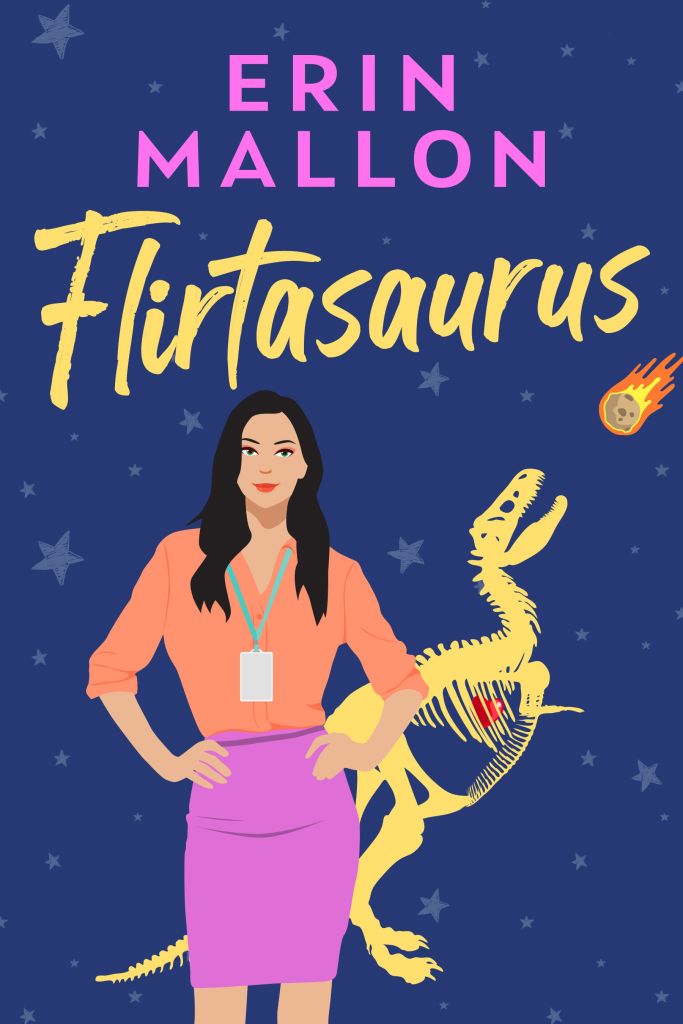 Flirtasaurus, an all-new workplace romantic comedy from debut author Erin Mallon is releasing July 15th, and we have the irresistible cover!