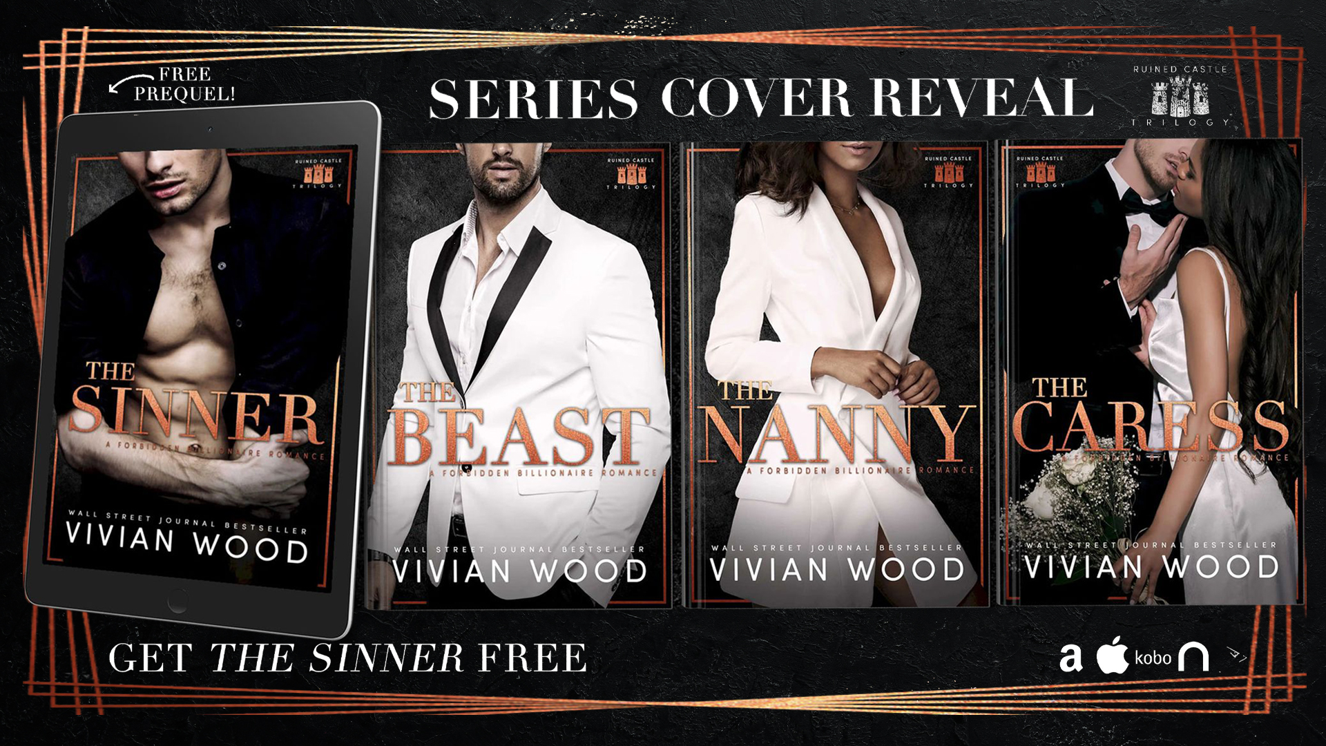 Power, beauty, money, drama, angst, and tons of steam… Snag The Sinner for zero pennies right now! It’s a totally free first taste of the raw, passionate, forbidden billionaire romance that’s part of the Ruined Castles series!